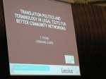 First of all, the excellent presentation made by Prof. Dr Frieda Steurs, the Dean of the Subfaculty of Language and Communication at Lessius, Antwerp, Belgium, on terminology and legal texts. Dr Steurs made some key points including:
