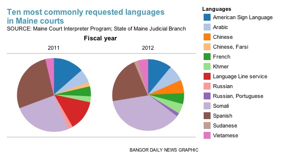 “Maine is now one of two states in the nation where Somali is the most requested language [in the courts],” said Sanders. “It was the most requested language in the fiscal year that ended June 30, 2012, and is on track to be the most requested language this year.”