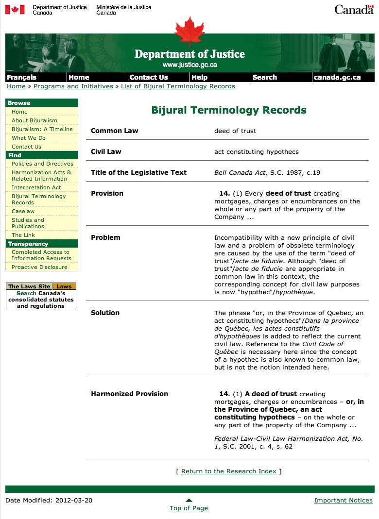 Here is the link to the Bijural Terminology Records Research Index. To change languages, click on the left-hand side of the green banner at the top.