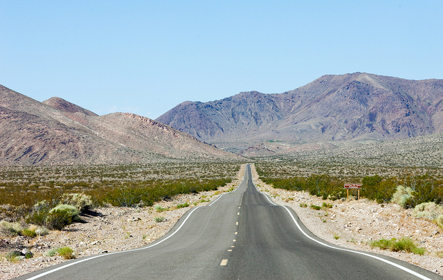 Roulant au milieu du désert américain, une femme se fait arrêter par la police puisqu’il est interdit d’y rouler seul.