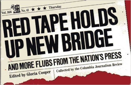 Anyway, I wanted to tell you about an out-of-print publication (but still available on second-hand book websites) with some wonderful linguistic flubs (or fluffs)… you’ll get the idea from the title: Red Tape Holds Up New Bridge.