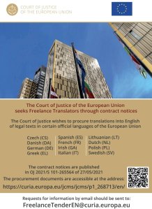 The Court of Justice of the European Union is seeking Freelance Translators through framework contracts for the translation of legal texts into certain official languages of the European Union.