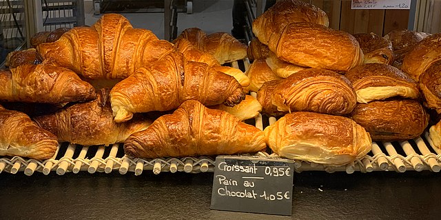 [The best for last… upon being asked how much a pain au chocolat costs, he said “It depends on the size” (!!), he got the price completely wrong, and attacked one of the bastions of French artisanat – the boulanger-pâtissier – by saying that they have too many calories]