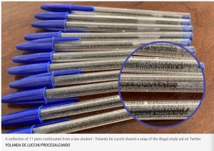 An elaborate scheme for cheating at law exams hit the media last week. A few years ago, in Spain, a law student apparently etched (!!) a number of Bic biros with crib notes. Newsweek reported: “The pens were confiscated from a student ‘a few years ago’ during an exam on ‘criminal procedural law’ and they only resurfaced while a law professor was recently tidying up her office.”
