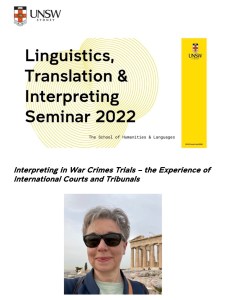 The School of Humanities & Languages at UNSW Sydney is organizing its Linguistics Translation & Interpreting Seminar 2022 on 19 April, on the subject of “Interpreting in War Crimes Trials – the Experience of International Courts and Tribunals“.